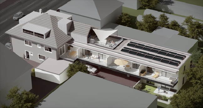 Umbau eines bestehenden Appartementhauses zu einem Wohnhaus mit 7 Wohnungen mit Seeblick.